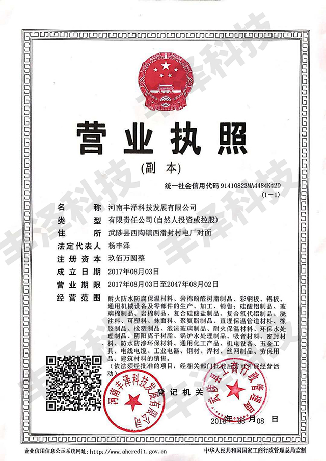 河南豐澤科技發(fā)展有限公司,是一家專業(yè)從事巖棉建筑保溫材料,集開發(fā)、科研、生產(chǎn)、銷售于一體的大型企業(yè)。本公司于2017年建廠,廠址位于河南省焦作市武陟縣。地理位置優(yōu)越,交通便利,產(chǎn)品遠(yuǎn)銷河南、山東、河北、山西等,擁有高檔出口巖棉生產(chǎn)能力,產(chǎn)品遠(yuǎn)銷澳洲、東南亞地區(qū)。